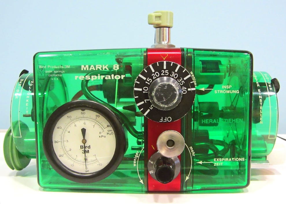 二戰過後,正壓呼吸器有了進一步的發展,其中的靈感來自戰鬥機飛行員在高空時配戴的供氧面罩。前美軍飛行員博德(Forrest Bird)把他的戰時經驗用在打造正壓呼吸器上,最終在 1955年推出了綠色盒身的正壓呼吸器Bird Mark 7 Respirator,這台呼吸器也是全球第一台投入量產的呼吸器。除此之外,它也被認為是第一台現代醫用呼吸器。