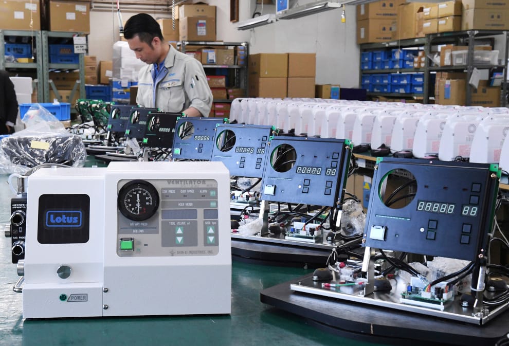 在全球呼吸器需求大增下,各國政府紛紛下令相關單位全速生產。圖為日本一間正在加速生產呼吸器的工廠。