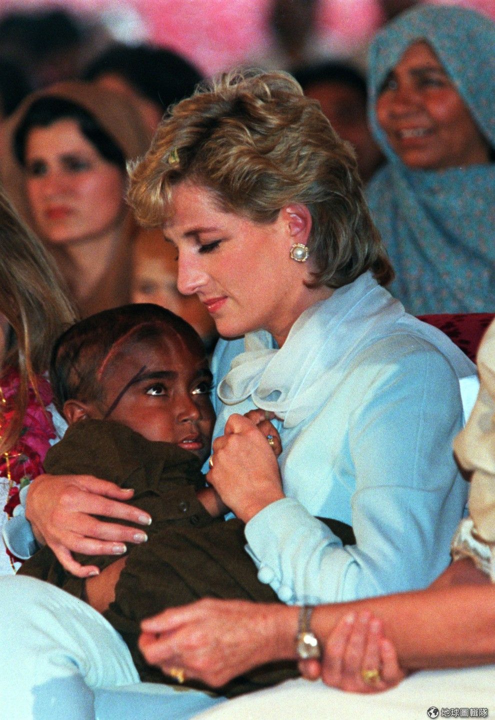 路透社照片中是出席巴基斯坦當地癌症醫院開幕儀式的黛妃,她抱著一名患有癌症的病童。