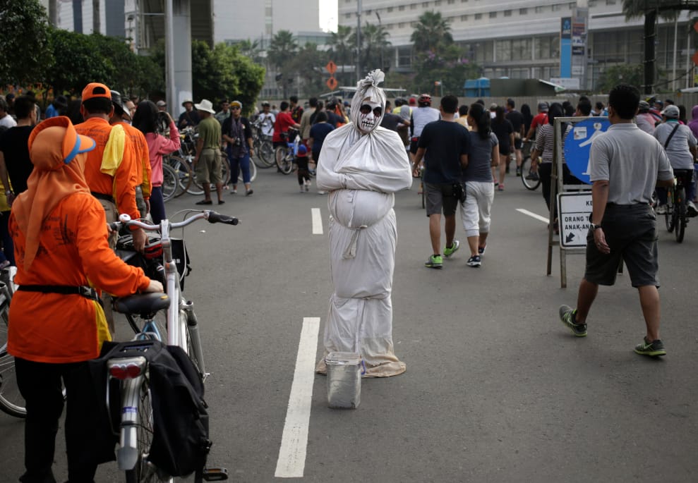 這就是印尼爪哇島卡普村新推出的防疫奇招:Pocong逛大街。