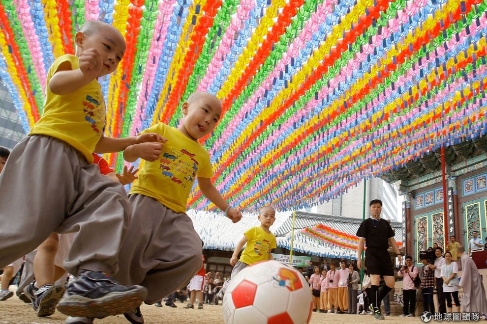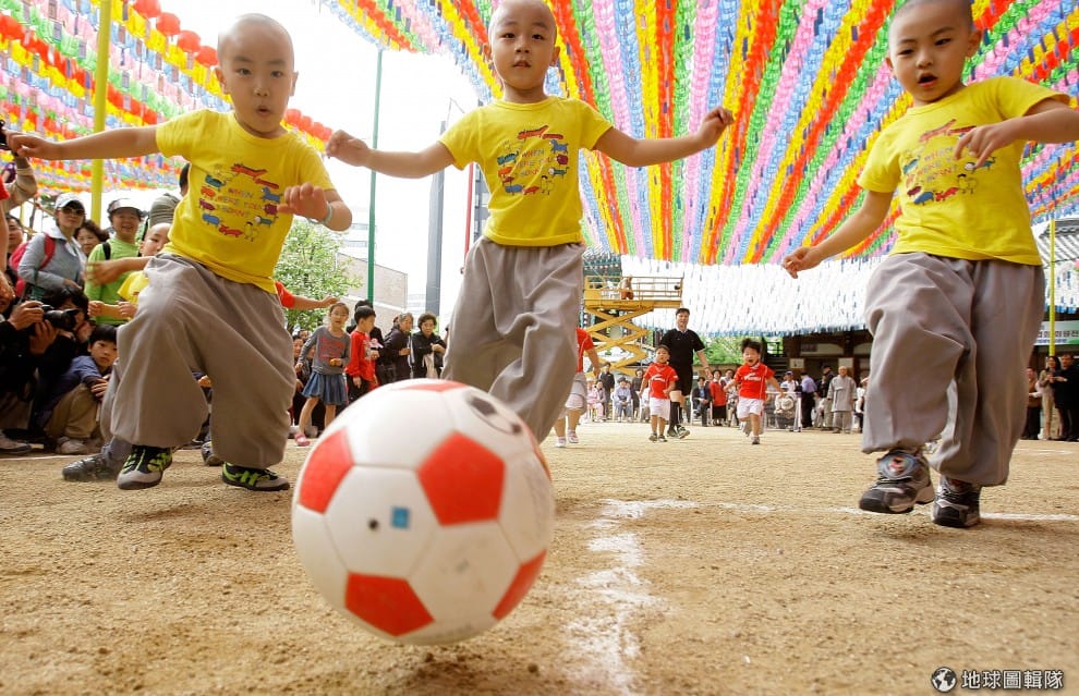 世界盃足球賽快到的時候,小和尚體驗營也跟隨潮流的舉辦小和尚足球比賽!圖片來源:Chung Sung-Jun/Getty Images