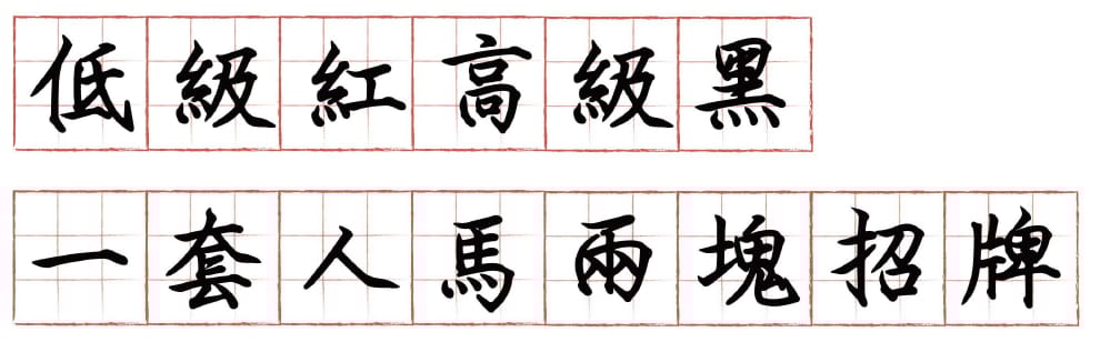 低級紅高級黑,有明褒暗諷之意,中共官方曾下令禁止這類手法;一套人馬兩塊招牌,則表示同一個機構或工作小組,對應任務而換上不同身分,是中共黨國體制下的特殊現象。這類中共特殊詞彙,有其文化與政治脈絡。