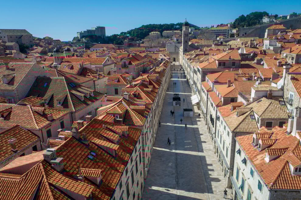 受到COVID-19(新冠肺炎)疫情的影響,原本熙來攘往的杜布羅夫尼克大街現在冷冷清清。