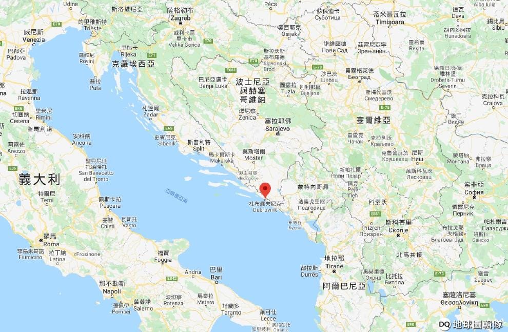 Newscom / 達志影像圖中紅色地標處是位於克羅埃西亞的杜布羅夫尼克城,這裡過去是拉古薩共和國,在中古世紀時和義大利的威尼斯一樣是繁榮的商港。