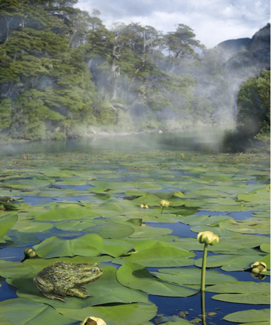 這隻出土青蛙印象中的南極,可能跟現代人印象中一片冰天雪地的樣子差距甚遠,在牠生存的年代及地區,南極的氣溫四季差異並不大,部分地區長滿雨林,就像今天智利的安地斯山脈的森林,或是紐西蘭南島森林的樣子。