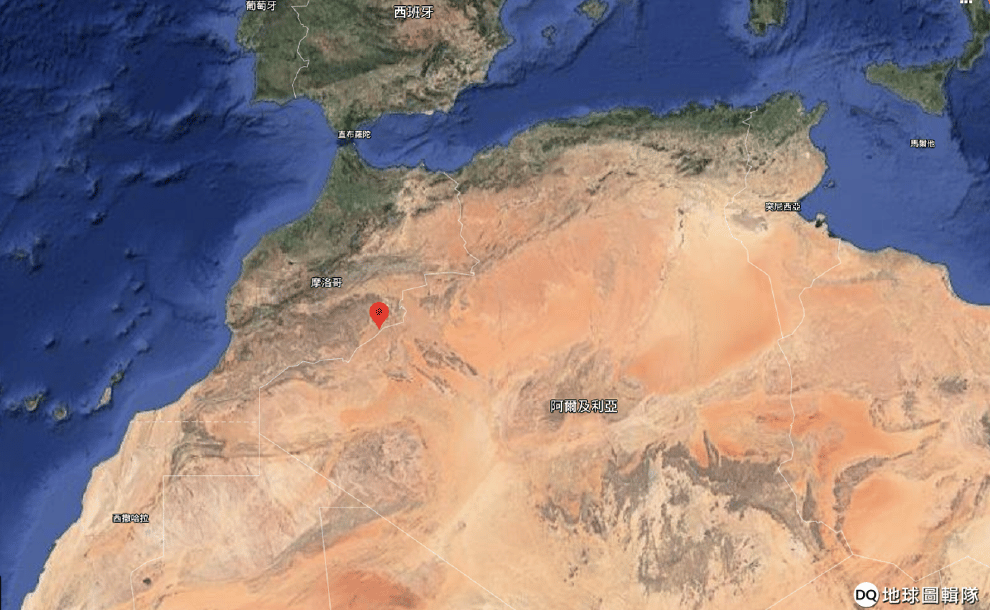 地圖上紅色標記處,就是位於摩洛哥、阿爾及利亞邊界,也是本次古生物學家的研究地點:卡姆卡姆地層的所在地。