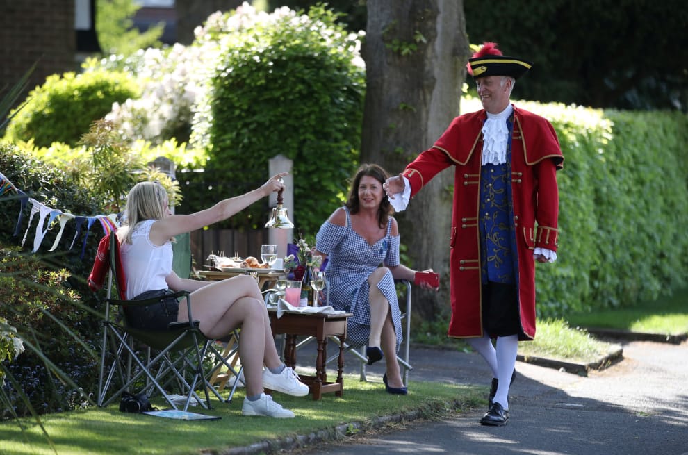 在歐戰勝利 75周年紀念日上,英國紐卡斯爾安德萊姆(Newcastle-under-Lyme)鎮的城鎮傳令官布萊佛德(Gordon Brayford),特地換上傳統服裝,一同慶祝今年的歐戰勝利紀念日。