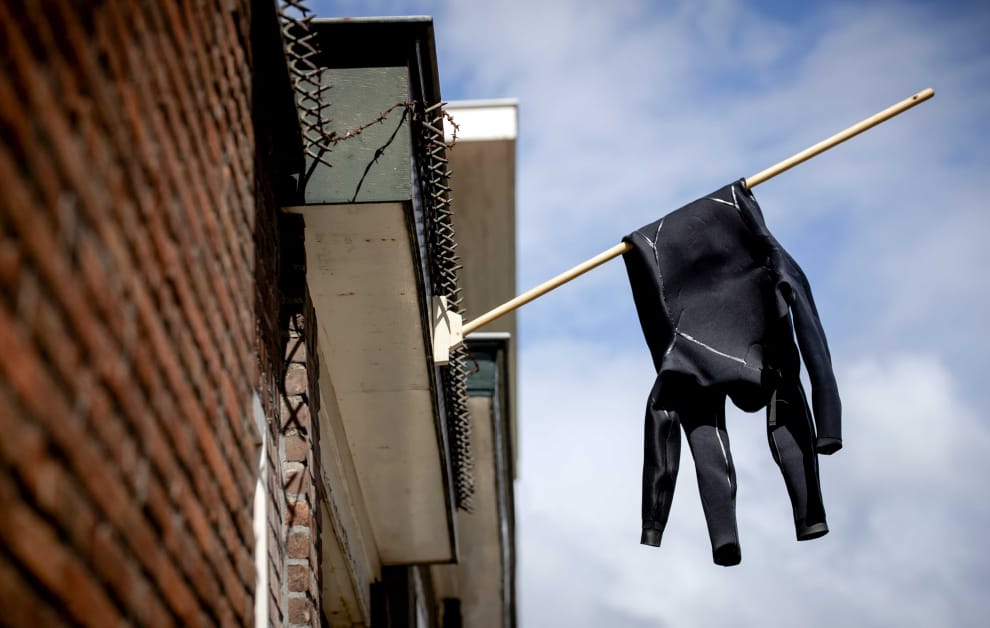 在席凡寧根當地,民眾在住家前吊起衝浪服,哀悼在事件中罹難的衝浪好手們。