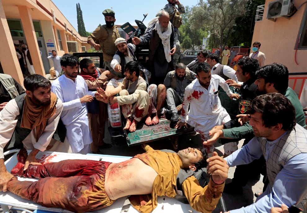 繼續閱讀圖為在阿富汗楠格哈爾省警官葬禮上遭到自殺炸彈攻擊的民眾,他們正被送往醫院治療。