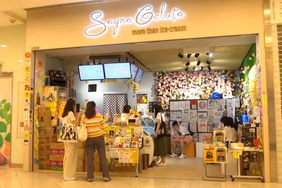在這間冰淇淋店裡,可以看到許多關於反政府示威的標語、海報。