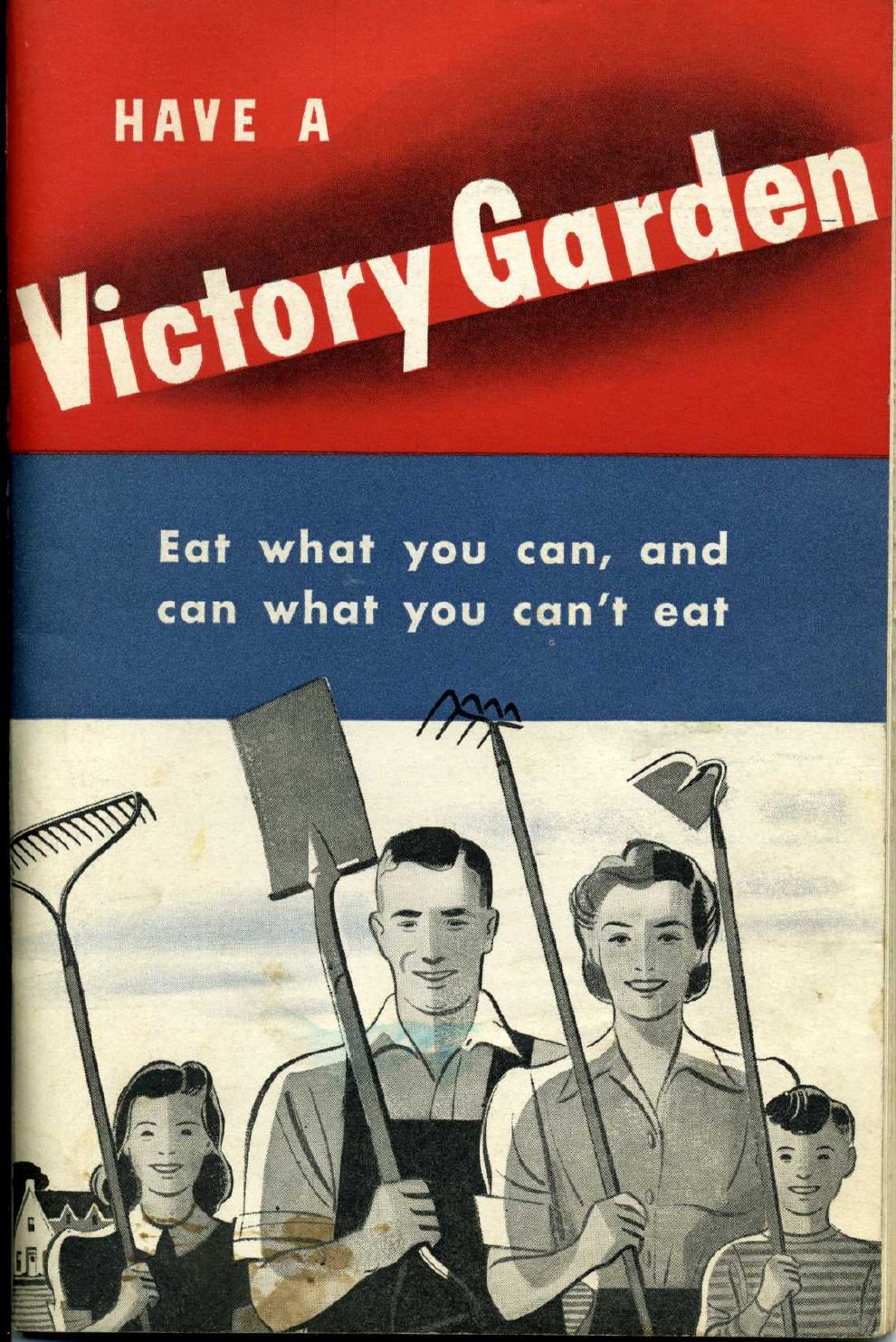 圖為第二次世界大戰期間,美國政府推廣「勝利花園」的宣傳手冊,上頭寫道:「吃自己種的菜,把自己不能吃的菜做成罐頭。」