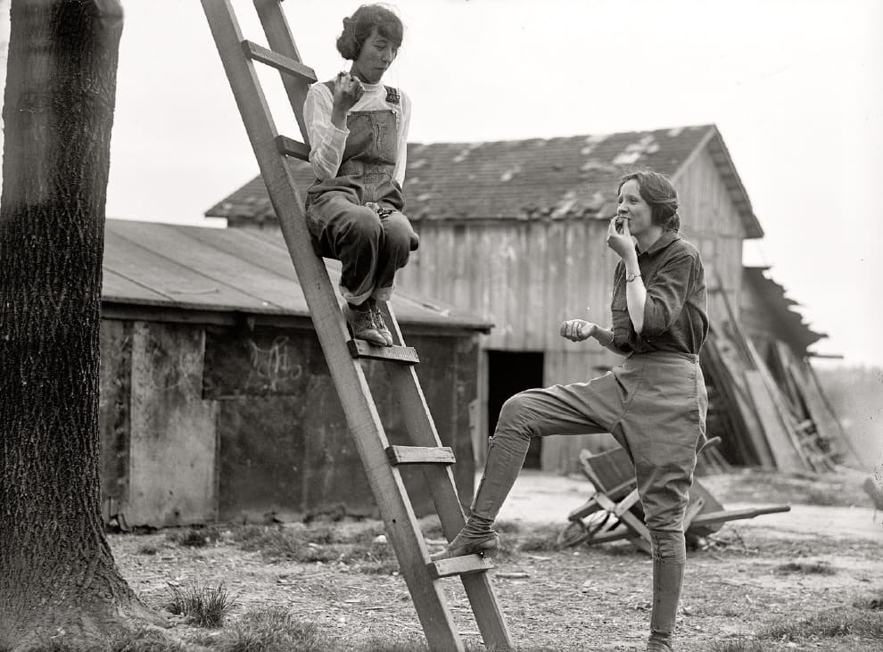 圖為第一次世界大戰期間,兩名婦女在政府的號召下打造出「勝利花園」,並且品嚐「勝利的果實」。