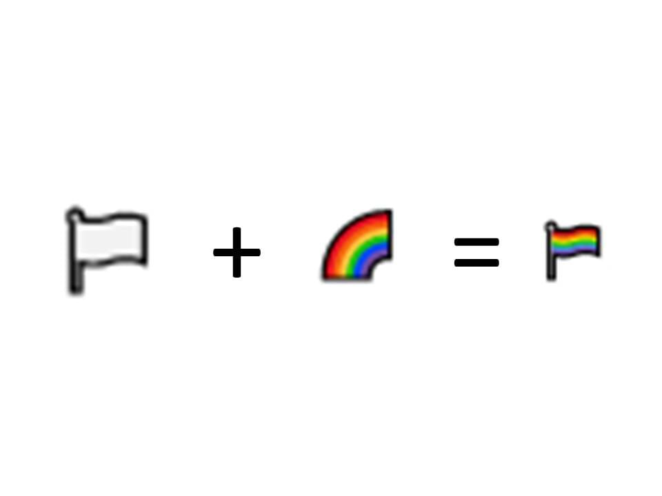 emoji的組成方式大概可以分兩種,一種是全新設計,另一種則是現有emoji的新組合,譬如上面的彩虹旗,就是由白色旗幟加上彩虹而來。