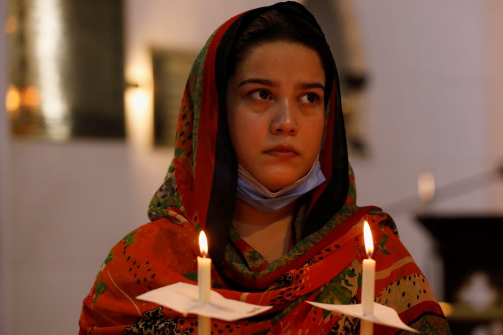 路透社 / 達志影像一名女性手裡拿著兩支蠟燭,參加為罹難者以及家屬舉辦的祈禱儀式。