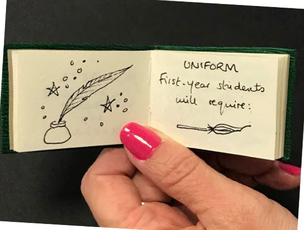 圖為JK羅琳自己畫的迷你小書,上頭列舉進入魔法學校霍格華茲(Hogwarts)需要的事物。