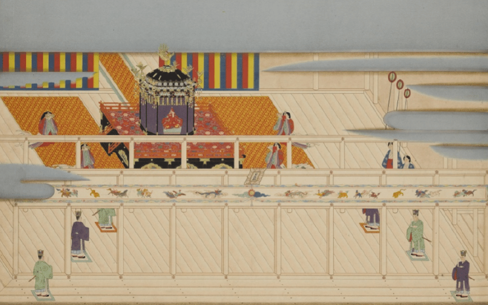 在這張記錄下孝仁天皇在 1864年即位的畫作中,也可以看到高御座的身影。