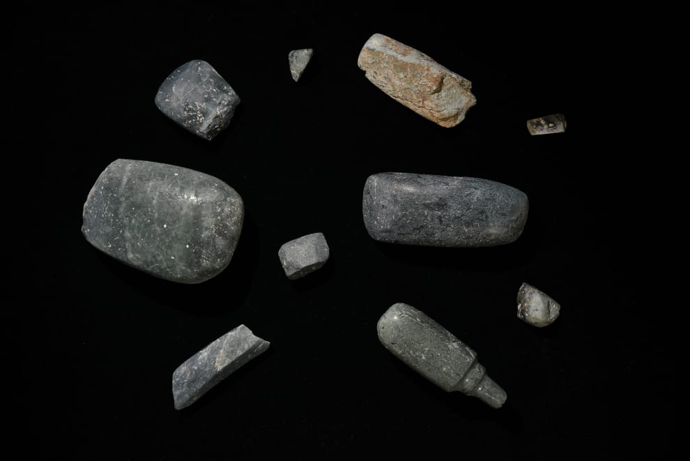 圖為猪俣健的團隊在Aguada Fénix現場發現的一堆玉斧,可能是用來紀念整個在眾人的合力之下,終於完成這項龐大的建築計劃所用。