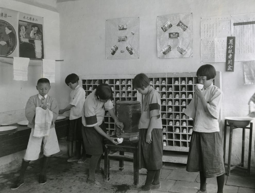 1920-30 年代,著名公衛學家蘭安生與同事們,教導學童使用個人水杯、毛巾。衛生運動影響了生活用具,同時,這些器皿也改變我們切身的身體習慣與感受,建構出全新的衛生感和自我認同。