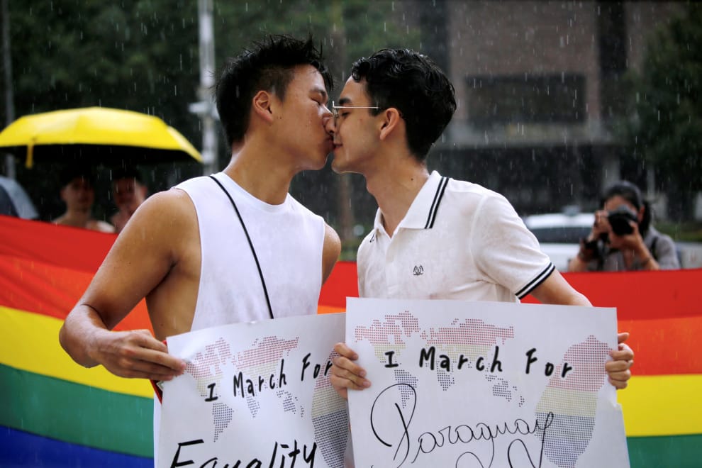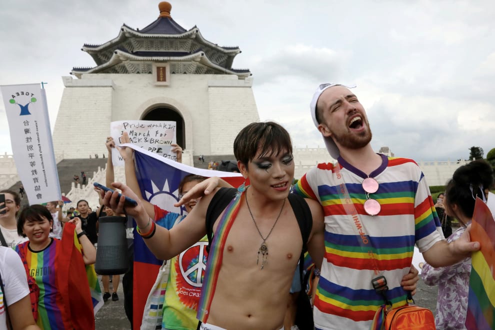 美聯社 / 達志影像在愛情面前,性別不是問題,周日舉辦的台灣LGBT驕傲大遊行要告訴大家這一點。