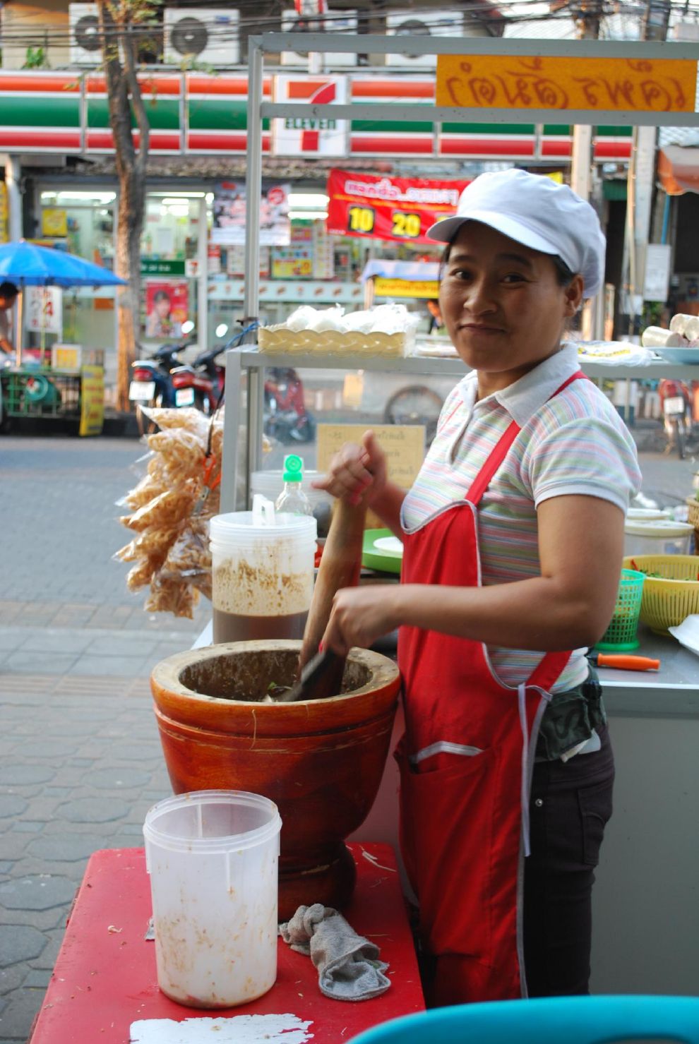 「叩叩叩...叩叩叩」在泰國只要聽到這個聲音,就知道有人在使用研缽與研杵,而這是製作國民美食青木瓜沙拉最不能缺少的用具,而且這研缽與研杵可講究得很,要是木製或是陶製的才好。