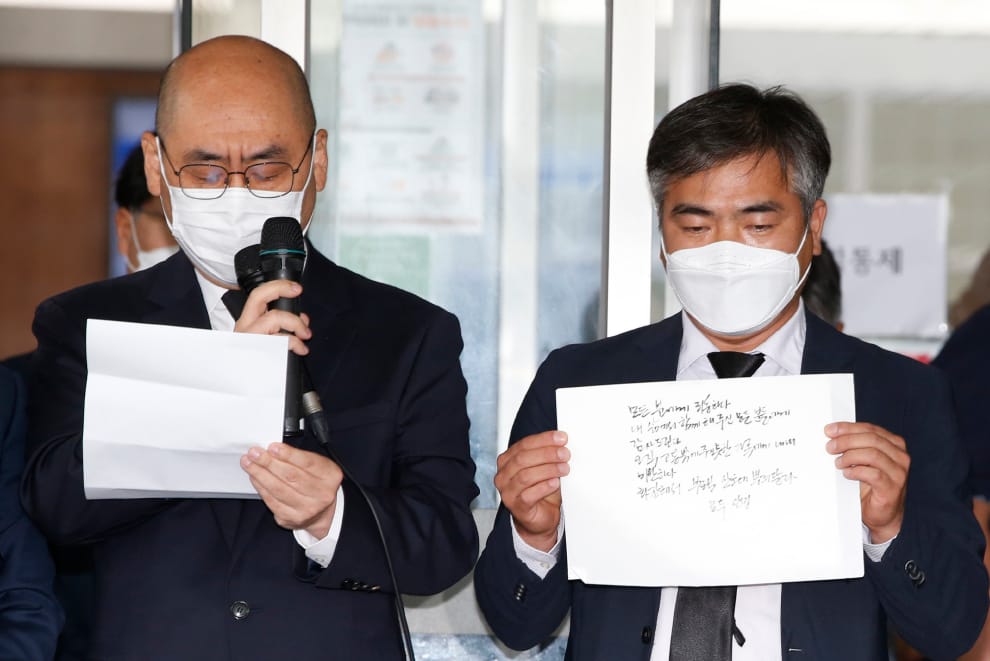 在首爾大學醫院外,首爾市政府官員對媒體展示朴元淳手寫的遺書,上頭留下了向大家道別的訊息。