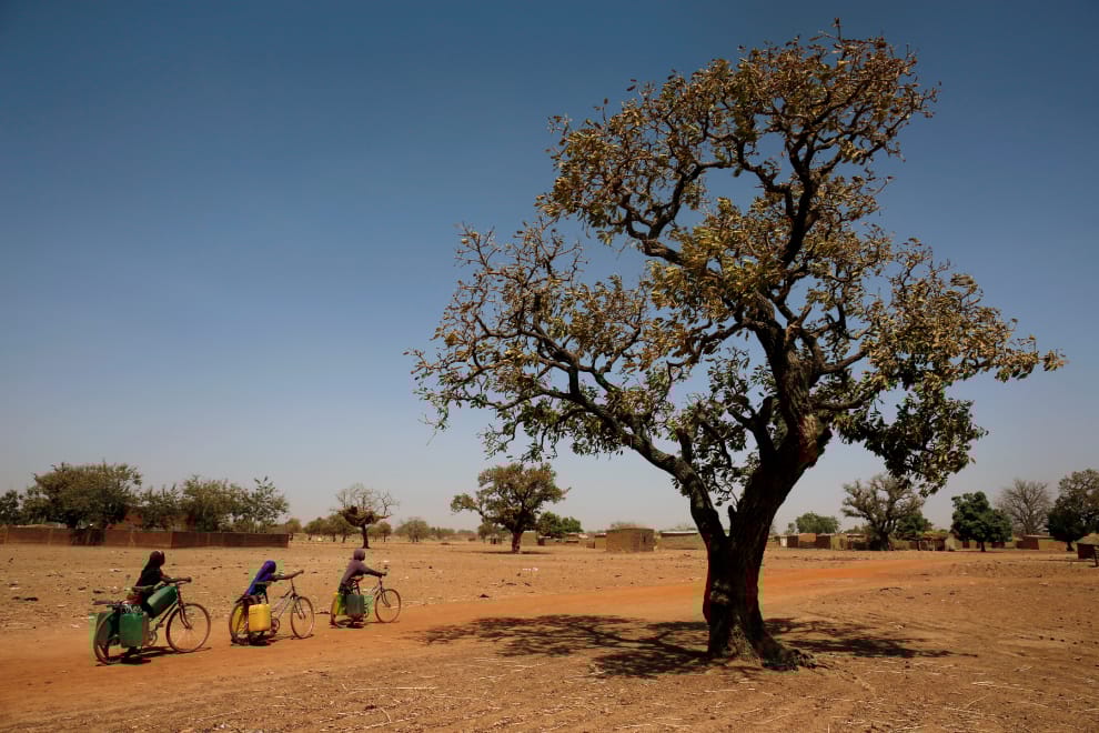 圖為布吉納法索首都瓦加杜古一景,人們牽著載有水箱的腳踏車前往取水。這裡是研究人員設置埃及斑蚊「捕卵陷阱」的地點之一。