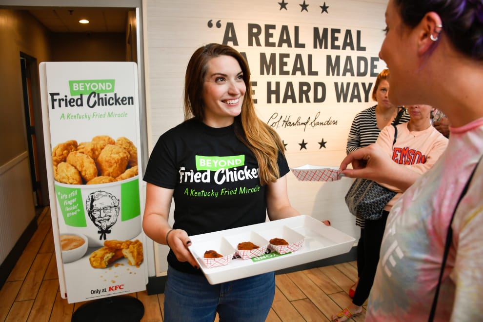 投入3D生物列印炸雞塊之餘,2019年8月,肯德基也曾與植物肉公司Beyond Meat合作,推出純素食的「超越炸雞(Beyond Fried Chicken)」產品,這款新炸雞在亞特蘭大試驗推出後廣受好評,不到5個小時就賣個精光。
