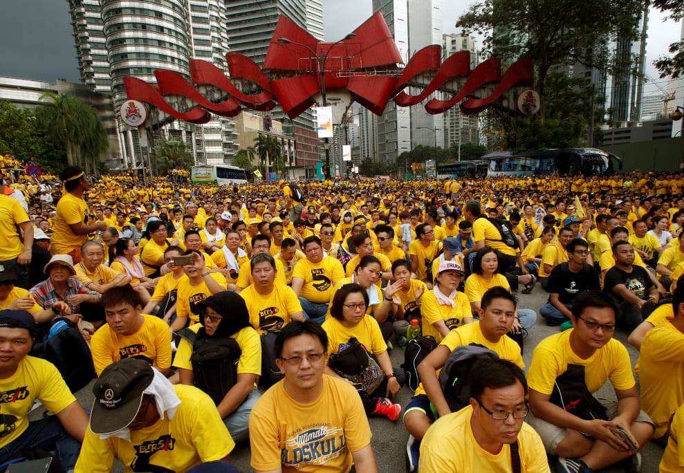 在 2015年「一馬基金」弊案爆發後,民眾身穿黃衣上街要求納吉下台。