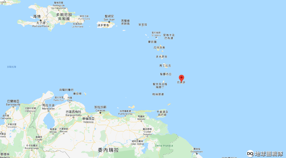 巴貝多位於中南美洲,位置大概在委內瑞拉東北部外海。