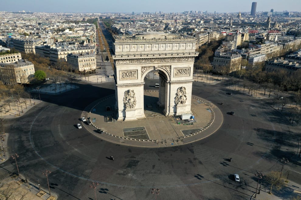 受到今年COVID-19(武漢肺炎)封鎖令影響,人類活動大幅降低,這也反應在地震震波的觀測數據上。圖為封鎖期間的法國巴黎凱旋門。