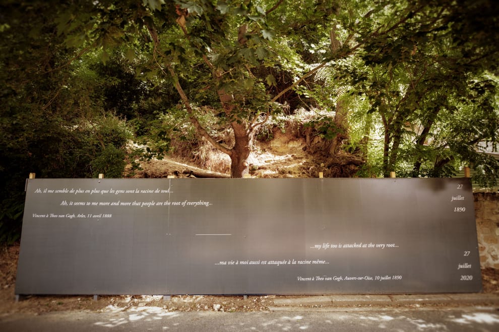 今年 7月28日,在瓦茲河畔歐韋的山坡前,人們舉辦一場小小的典禮,邀請梵谷的弟弟西奧(Theodorus van Gogh)的曾孫威廉(Willem van Gogh)到場為一塊紀念牌揭牌,讓往後到訪的遊客也能與當年的梵谷站在同一片山坡前,望著今日仍生機蓬勃的「樹根」。