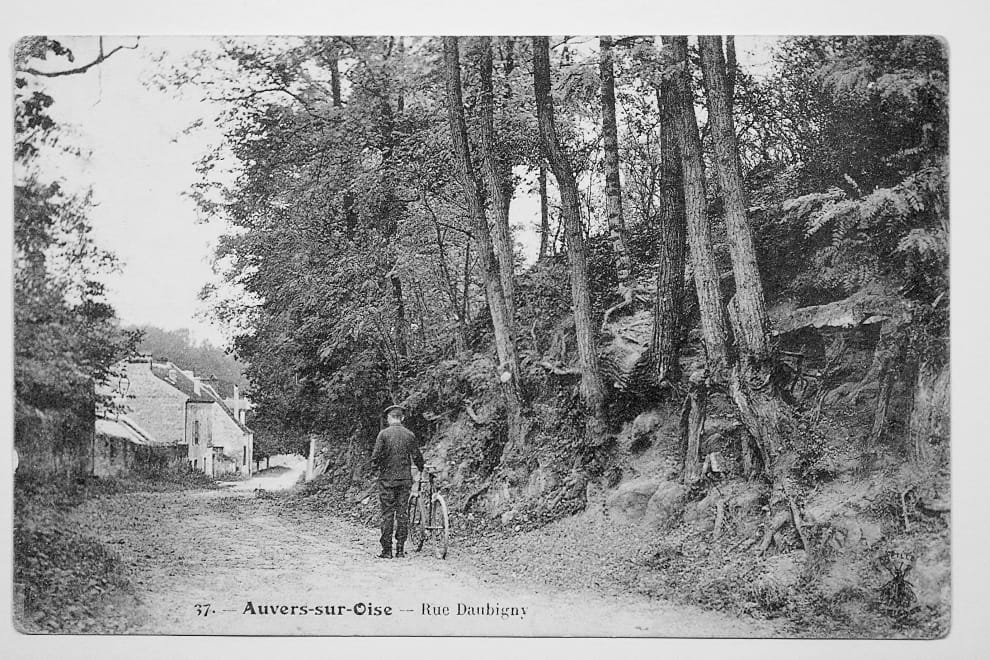 時間回到今年法國封鎖期間,范德文利用這段空檔整理手邊大量的資料。這時,他發現一張以瓦茲河畔歐韋為主題的明信片,內容是一名男子牽著腳踏車走在山坡旁的小路上,一旁盤根錯節的樹根,讓他想起了梵谷的作品《樹根》,不禁懷疑這處山坡,正是梵谷當年繪製《樹根》時的參考地點。