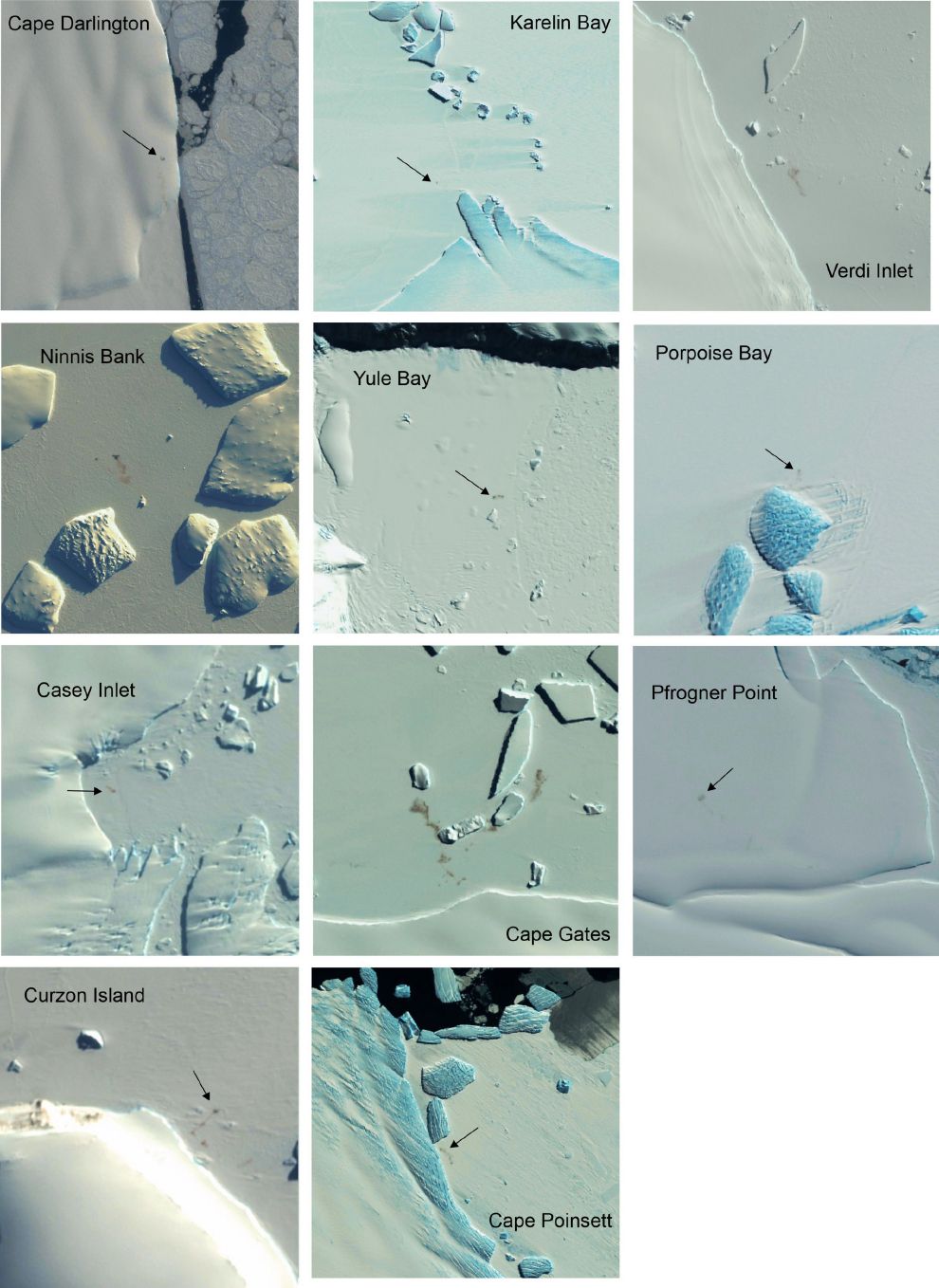 網友Peter T. Fretwell & Philip N. Trathan看衛星照片找便便汙漬