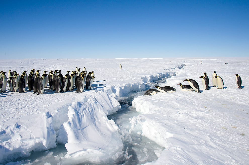 隨著全球暖化、海冰融化,皇帝企鵝的棲地在本世紀末可能會減少超過 30%。