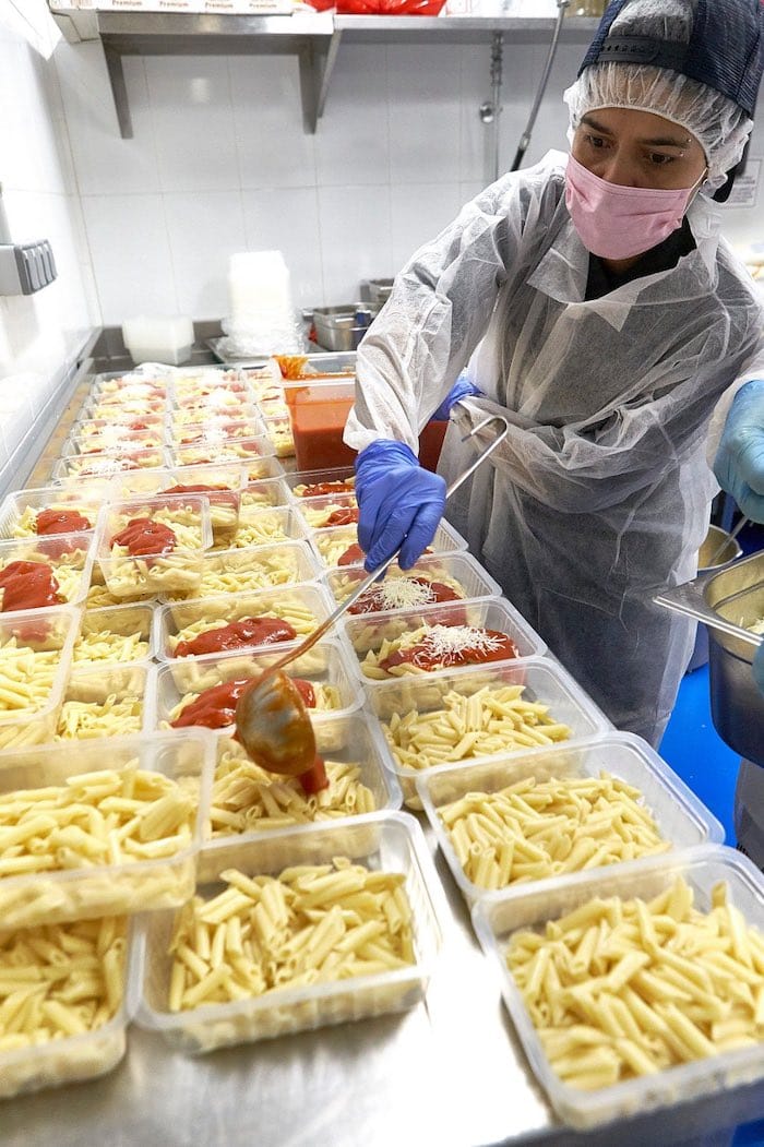 世界中央廚房與馬德里當地餐飲集團Grupo Arzábal合作,於市政府提供的餐飲學校廚房裡,為眾多弱勢家庭備餐。