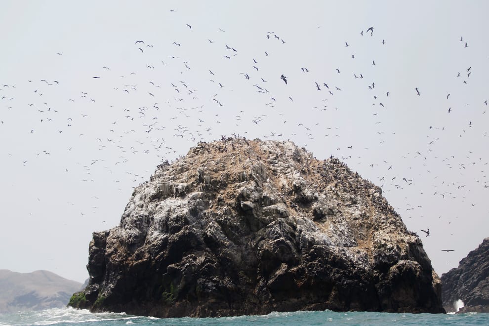 在農夫眼中,海鳥便便富含大量的氮、磷,可以作為肥料使用。圖為秘魯中南部外海的亞洲島(Isla de Asia),上面佈滿大量的海鳥糞。
