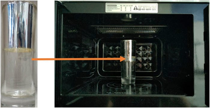 蓋上精心設計的鍍銀玻璃杯後,研究人員們成功解決用微波爐加熱開水,卻會導致杯中開水溫差大的問題。