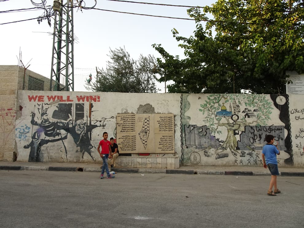 難民營的塗鴉牆,通常是支持巴勒斯坦獲得自由的話語和圖畫。