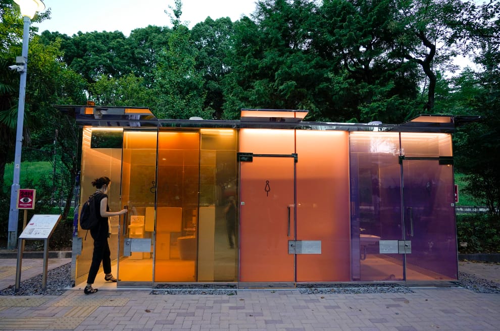 最近,日本首都東京近郊的澀谷市出現兩座色彩繽紛的公廁,它們在周遭日常色調中特別突出。走近一瞧,這才發現新公廁們的不尋常之處:完全透明。