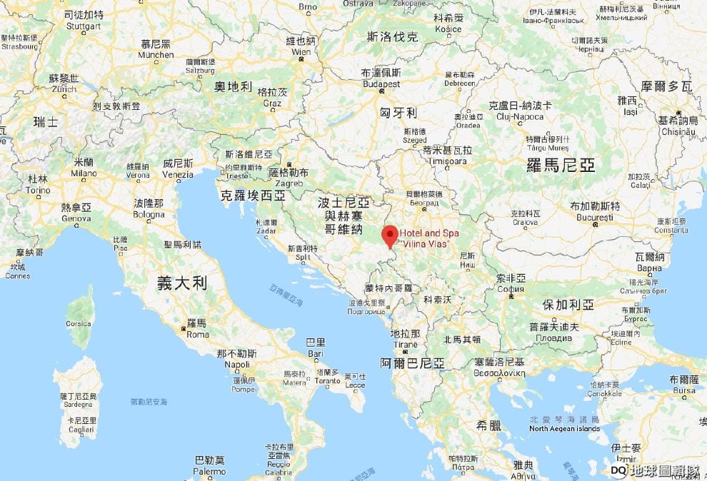 網友PRODUCER圖中紅色地標處,就是波士尼亞戰爭時,被塞爾維亞「白鷹」準軍事組織領導人盧基奇當作指揮總部的維利納弗拉什飯店。