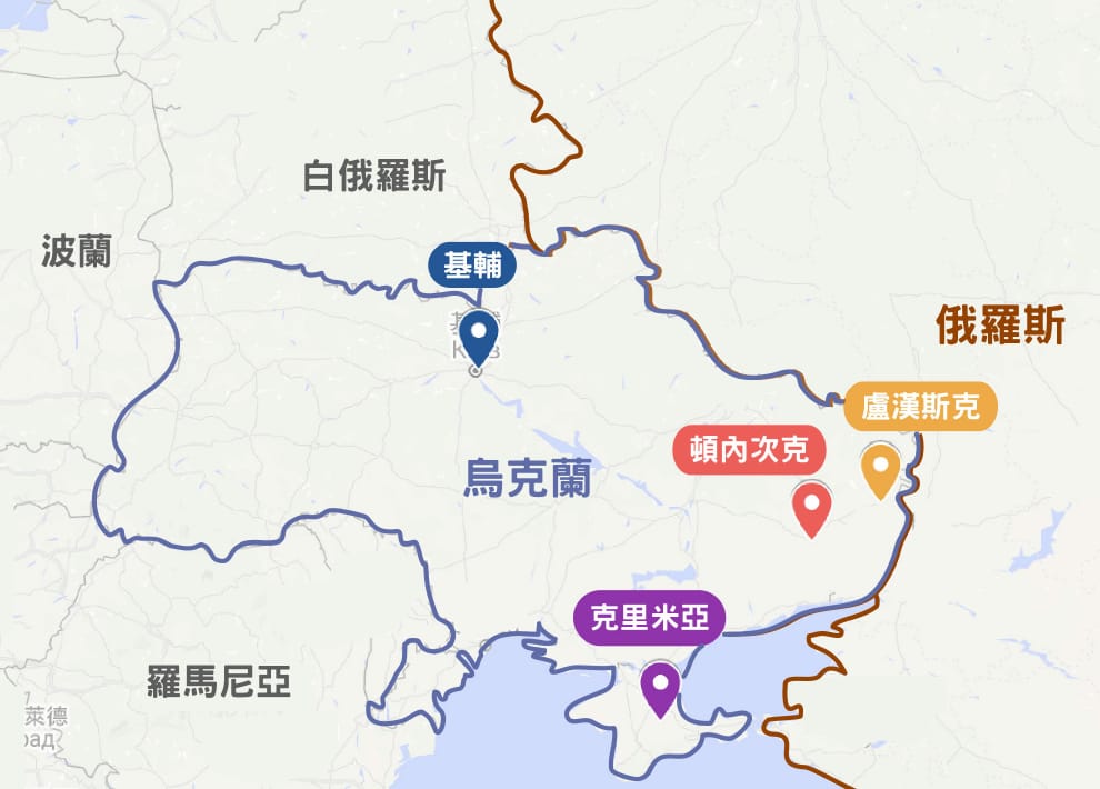 此時,俄羅斯遂以保護俄裔居民名義,出兵烏克蘭南邊的克里米亞。最終,克里米亞舉行公投決定脫離烏克蘭、投向俄羅斯懷抱,東烏克蘭另兩個省(頓內次克、盧漢斯克)的大部分地區則自行獨立,成立親俄的政權。