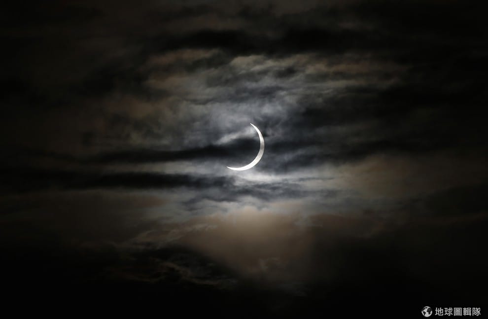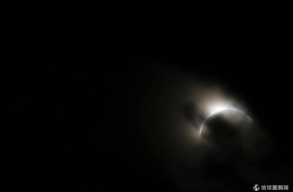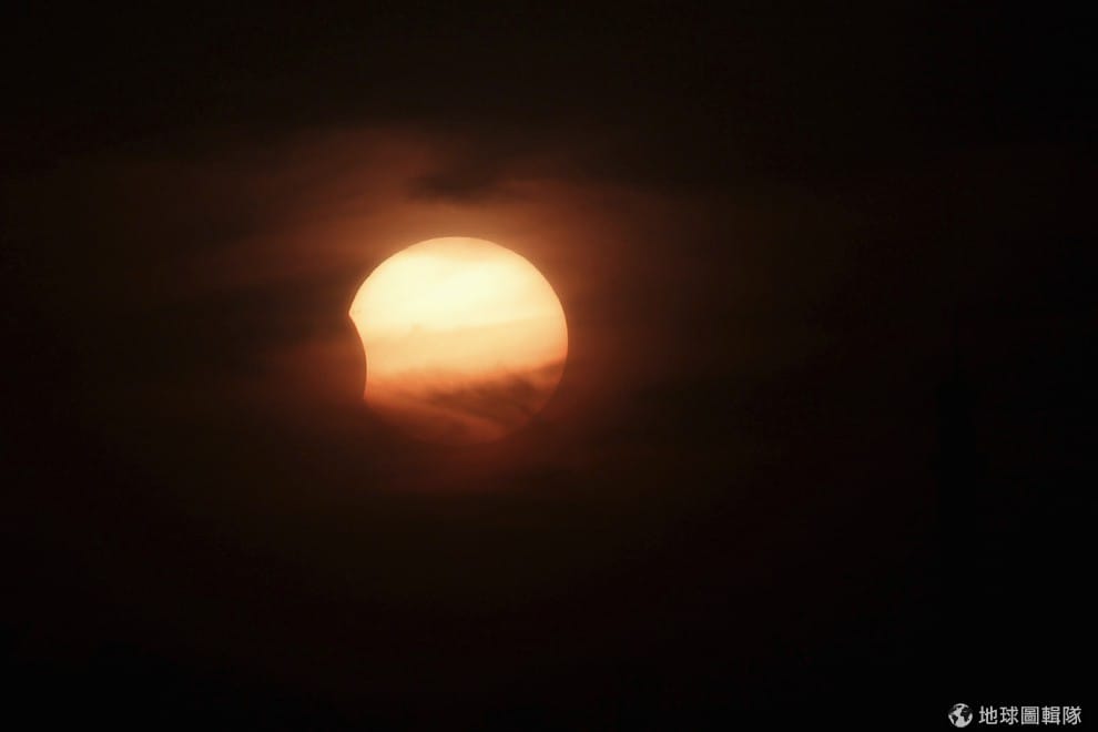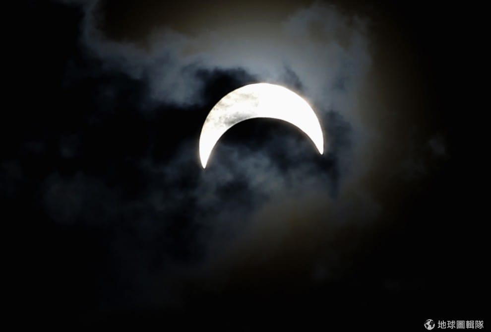 路透社約旦當地看到的日全蝕,還能看見一些光亮從雲中透出。
