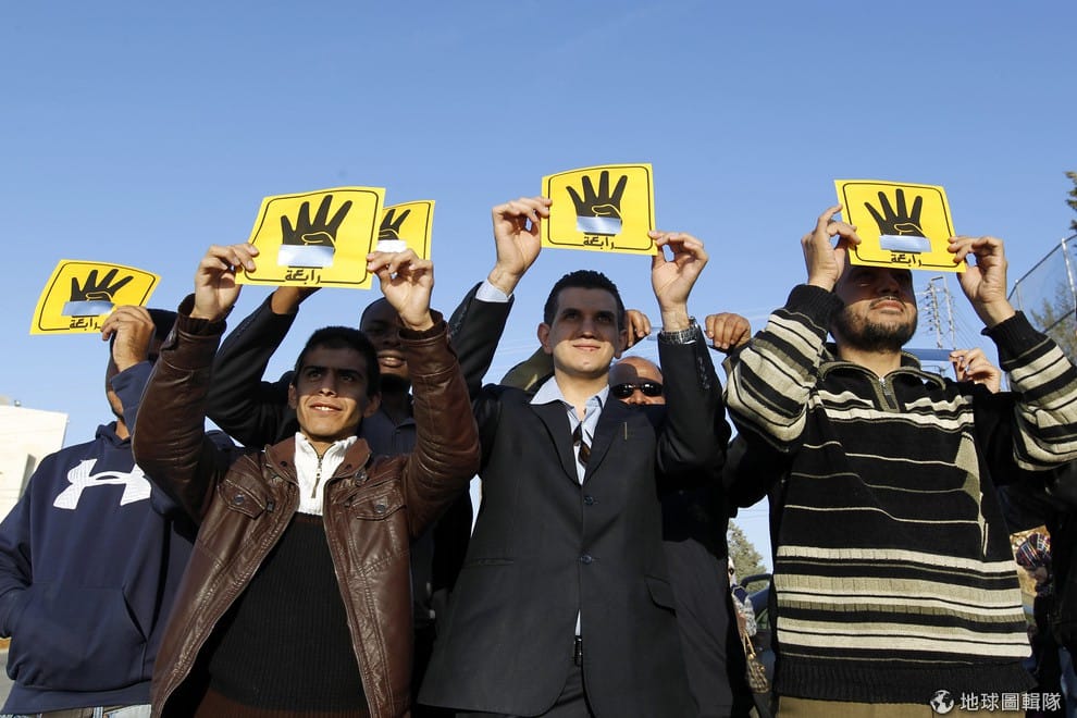 路透社約旦的民眾看天文現象也沒忘記「表態」,他們舉起寫著4的標語表達對埃及前總統穆爾西的支持。