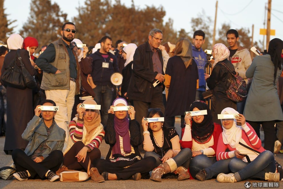 路透社約旦地區的賞日蝕民眾。