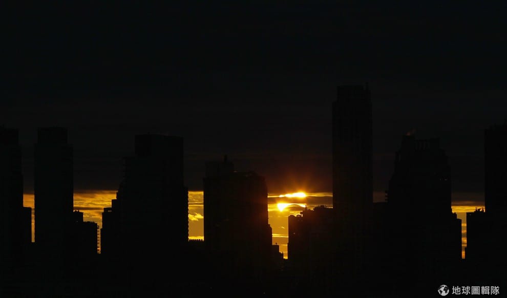 美國曼哈頓地區高聳的大樓少了天光,只剩下一個個黑色的剪影。