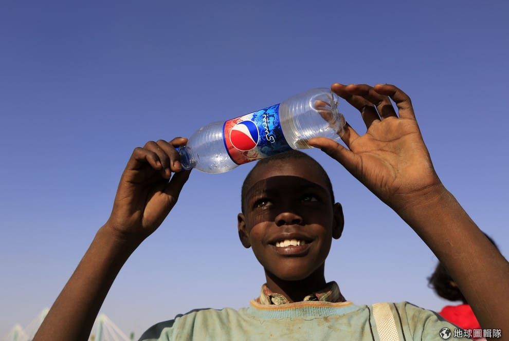 路透社蘇丹地區的女性拿著遮光片抬頭望。