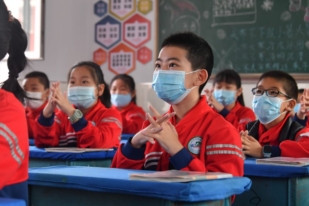 在內蒙古自治區的呼和浩特市,學生們正在學習正確洗手的方式。近日,內蒙古教育局宣布,要將國中小學的三門科目以中文教學取代蒙古語。