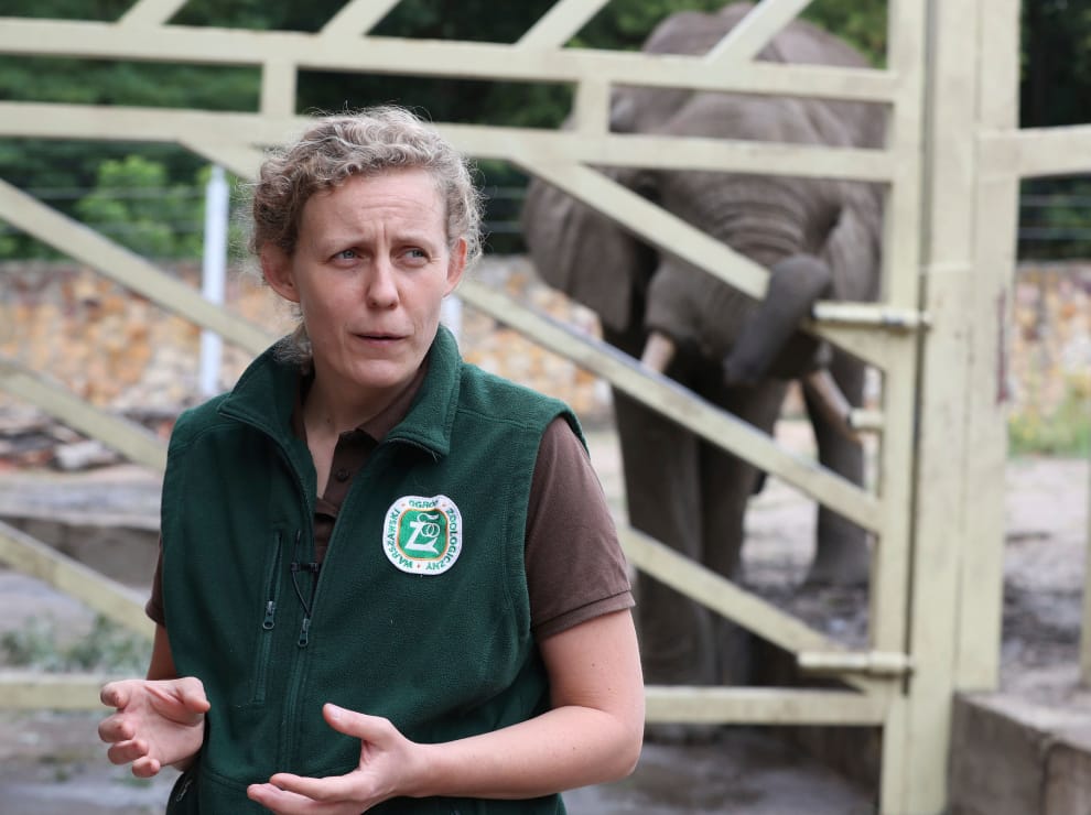 在動物園內,祖科夫斯卡醫生正在說明這項CBD計畫的細節。