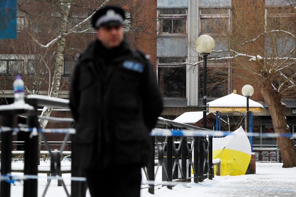 2018年,諾維喬克被用於毒殺前俄國特務斯卡里帕爾父女,毒性、擴散速度、易於運送等特性引發國際關注。圖為 2018年斯卡里帕爾案爆發後,一名英國警察在案發現場附近站崗,警方並用黃色的小帳棚保護案發現場。