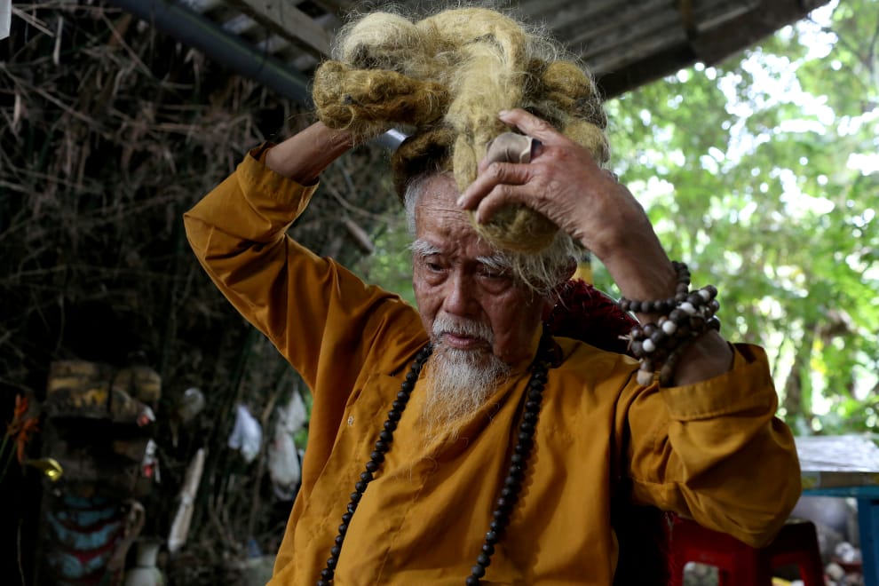 路透社 / 達志影像一眼望去,很難想像照片裡的阮文建爺爺其實有著一頭 5公尺長的頭髮。